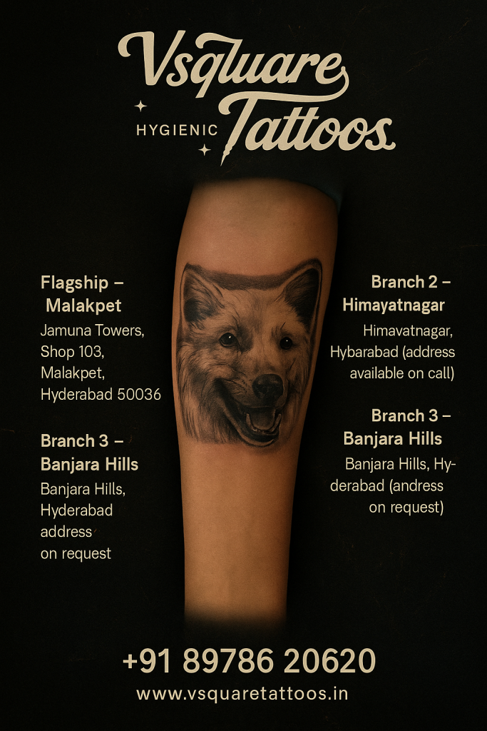 In a city as dynamic and culturally rich as Hyderabad, self-expression is not just a choice — it’s a lifestyle. At V Square Tattoos, we believe that tattoos are not just ink on skin; they are deeply personal reflections of your journey, identity, and emotions. From bold sleeves and sacred geometry to subtle minimalist designs, our mission is to turn your imagination into a permanent masterpiece — safely, artistically, and memorably.